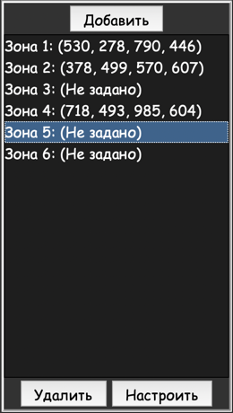 Кнопка «Удалить» удаляет выделенные зоны. Если выделенных зон нет, будет удалена одна последня зона